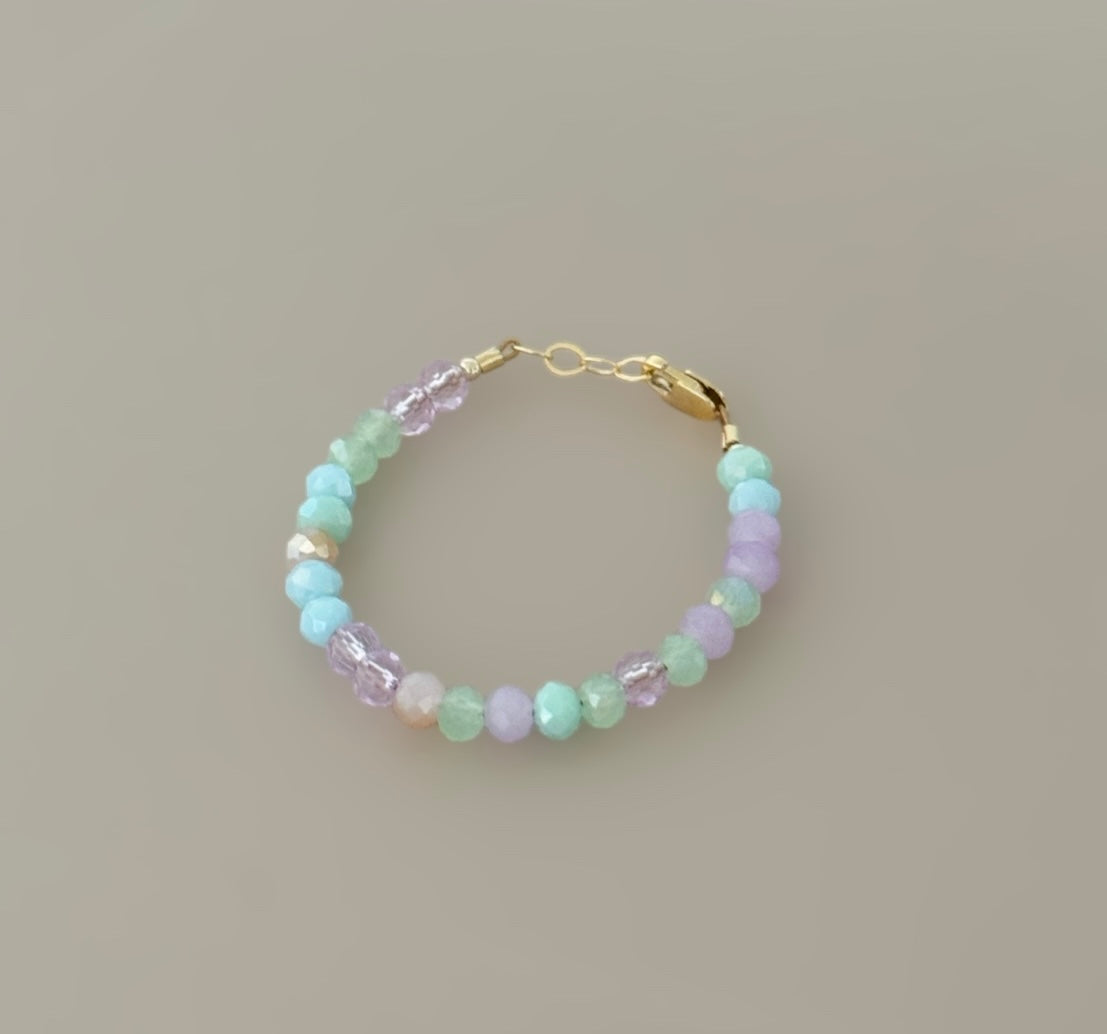 Bring a little magic to her day with our Pastel Dreams bracelet — a sweet blend of soft lilac, mint, baby blue, and iridescent crystal beads that shimmer beautifully in the light. Each bead is hand-selected for its dreamy, candy-colored glow, creating a bracelet that feels whimsical, feminine, and perfect for everyday wear.