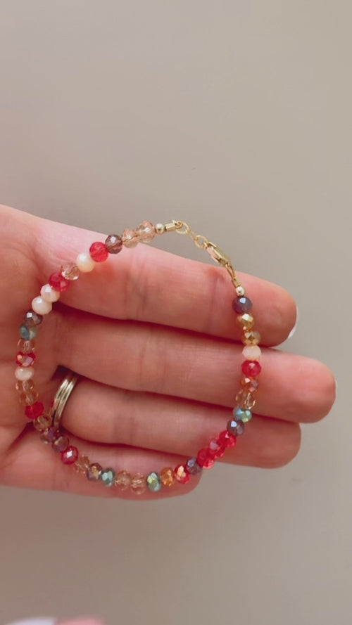 Add a pop of festive sparkle this season with our Christmas Mix Beaded Bracelet — a cheerful blend of red, green, gold, cream, and crystal tones that capture the joy of the holidays. Hand-strung with high-quality glass beads and 14k gold-filled findings, this bracelet is perfect for adding a touch of Christmas cheer to your everyday stack or gifting to someone special.